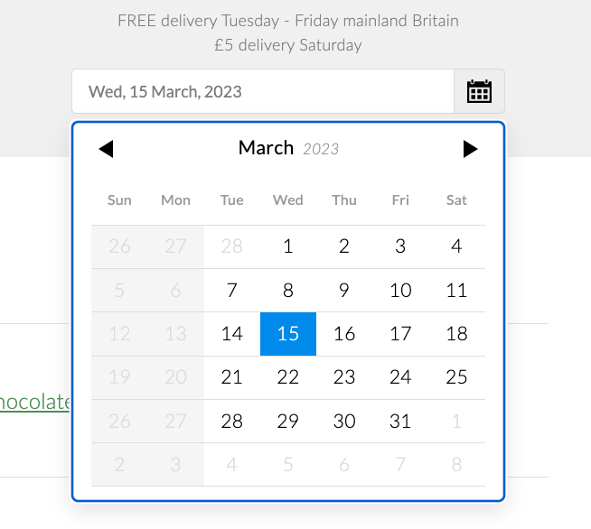 Pretty straightforward this one. Choose your preferred date for the delivery of your first box. We'll deliver the next boxes in sequence from there.